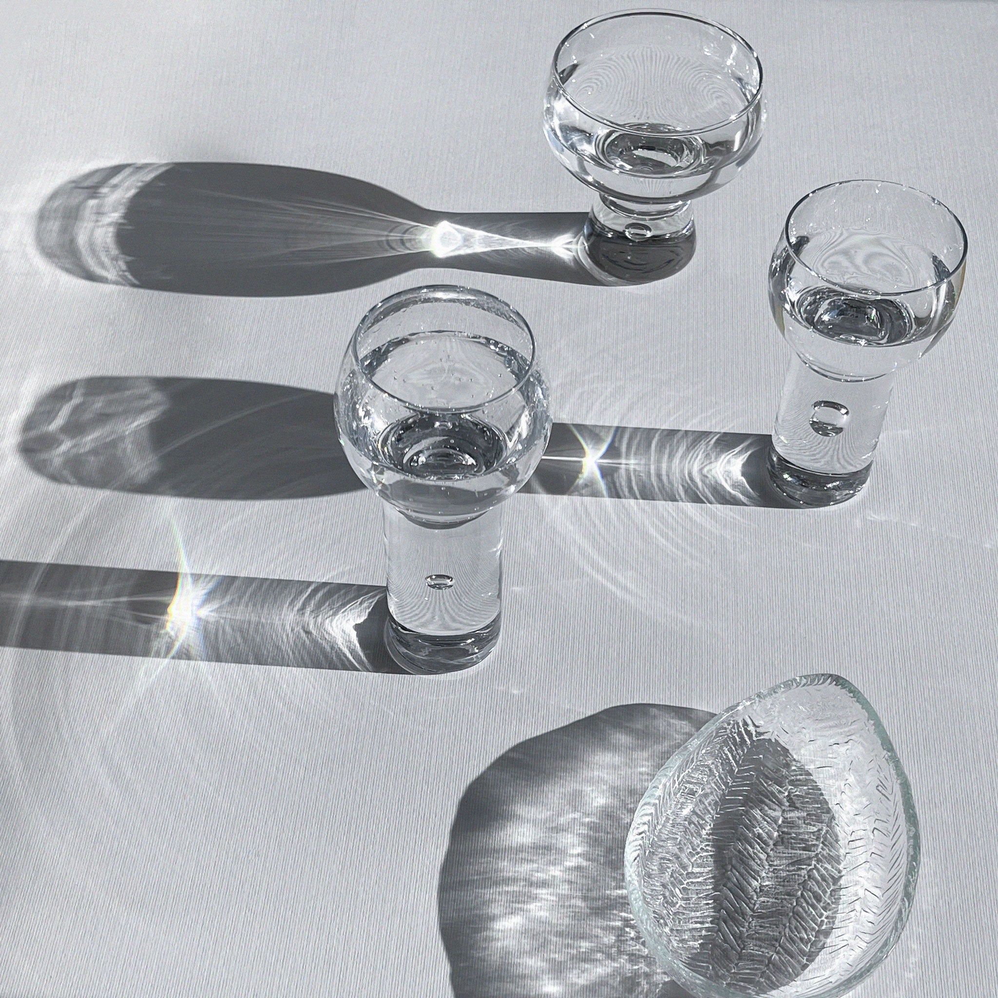 Más que objetos o gestos de diseño, estas piezas operan como micro–ambientes: secciones artificiales de un territorio donde una burbuja de aire queda suspendida bajo una superficie sólida, un umbral térmico, como ocurre bajo el hielo o en formaciones minerales translúcidas.